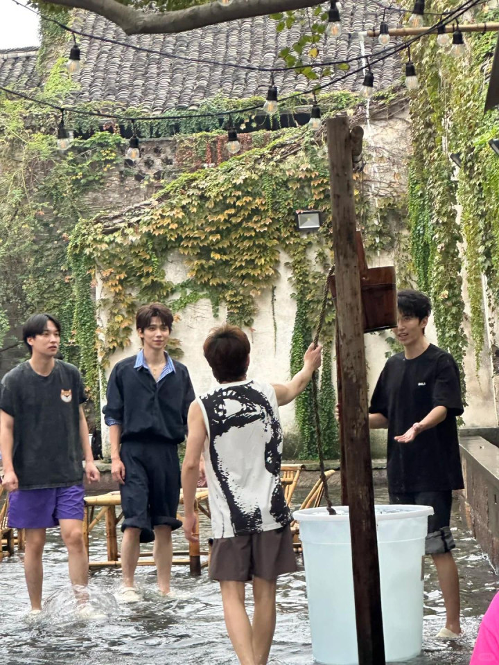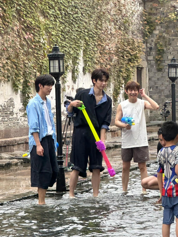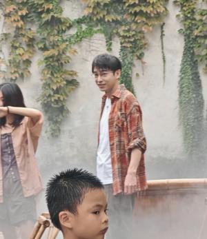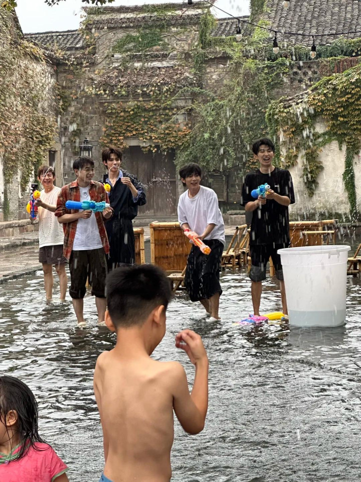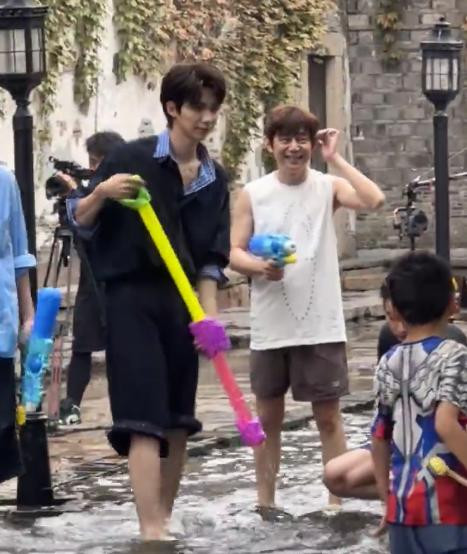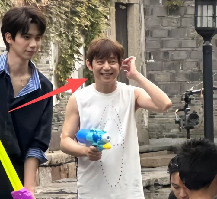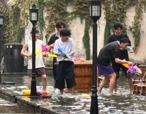 只见他站在小鲜肉人群里,这娇小的背影像个小孩一样,细胳膊细腿的感觉连水枪都拎不起来。