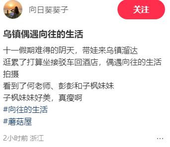 这不,十个勤天前往乌镇录制节目,连乌镇的客流量都直线上升,不少网友也分享出了路遇图。